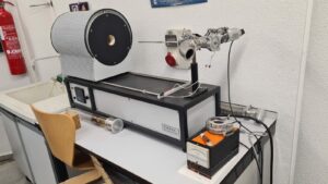 Permite realizar calentamientos en materiales pequeños hasta 1200ºC en vacío o en diferentes atmósferas controladas, al tiempo que puede medirse resistencia eléctrica. En la actualidad la cámara está equipada con: